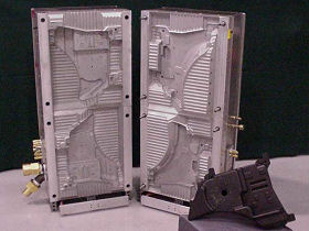 plastic has cooled and hardened the mold opens up and the part is ejected.